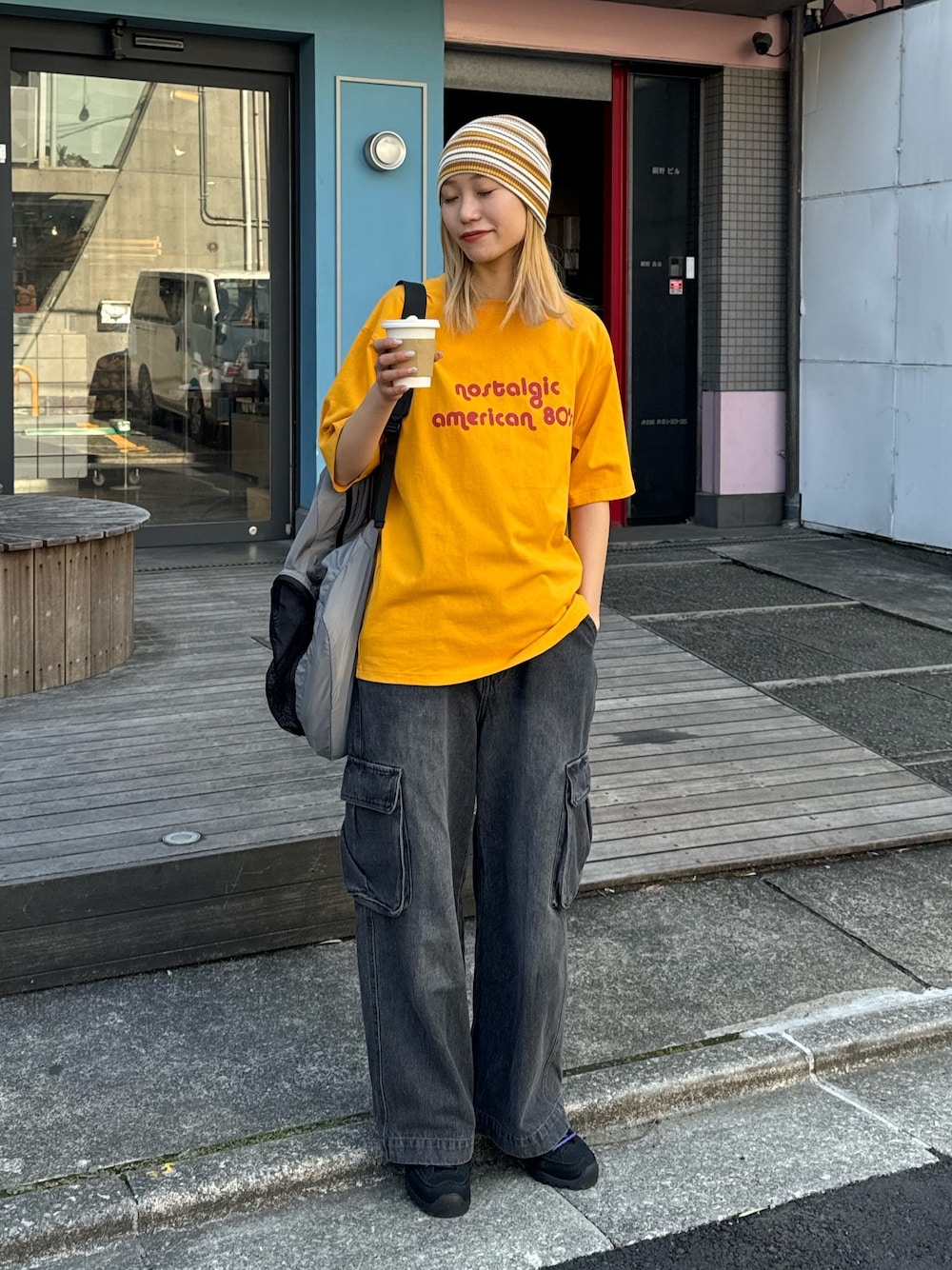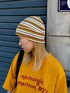 夏らしい配色のロゴTシャツに マルチボーダーのビーニーを合わせたカラーコーデ。 instagram ▶︎ @teri0_____