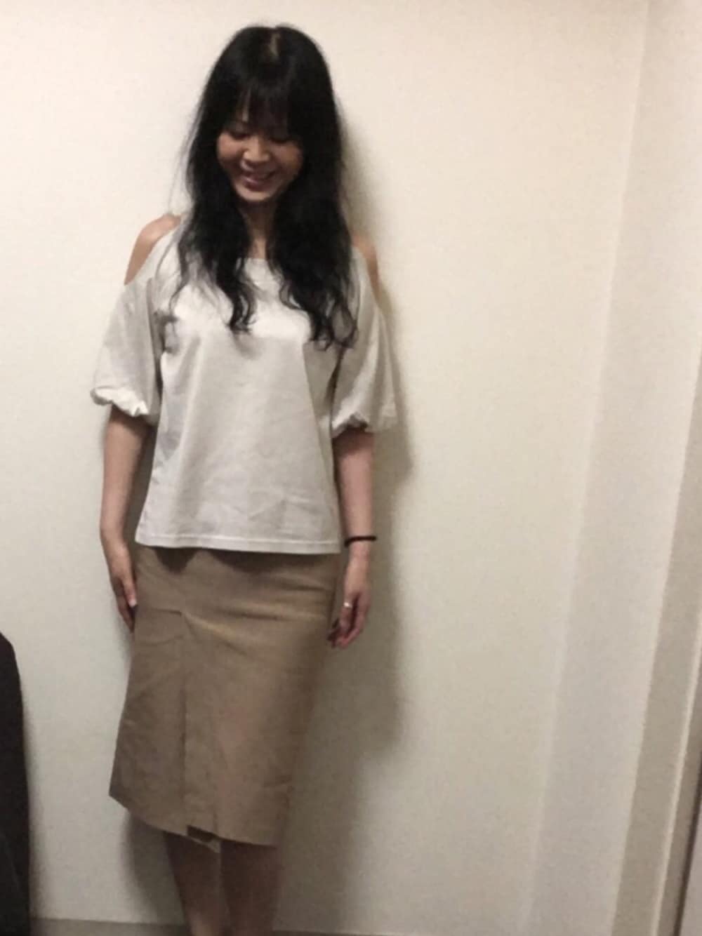 まるのTシャツ/カットソー「パフスリーブオフショルTシャツ(半袖)」を使ったコーディネート