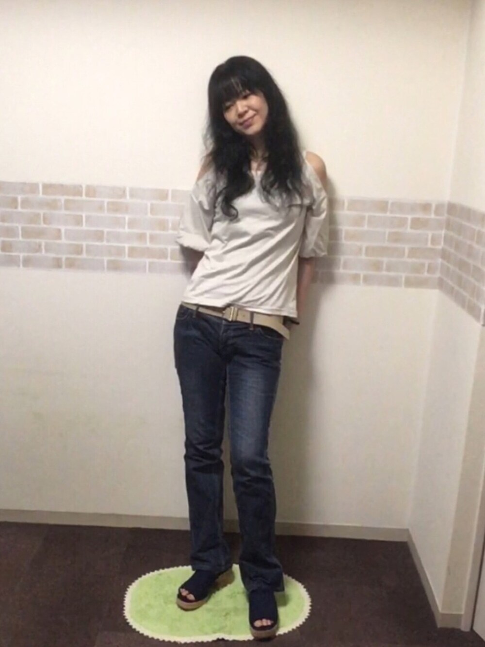 着用コーデ:16件まるのTシャツ/カットソー「パフスリーブオフショルTシャツ(半袖)」を使ったコーディネート