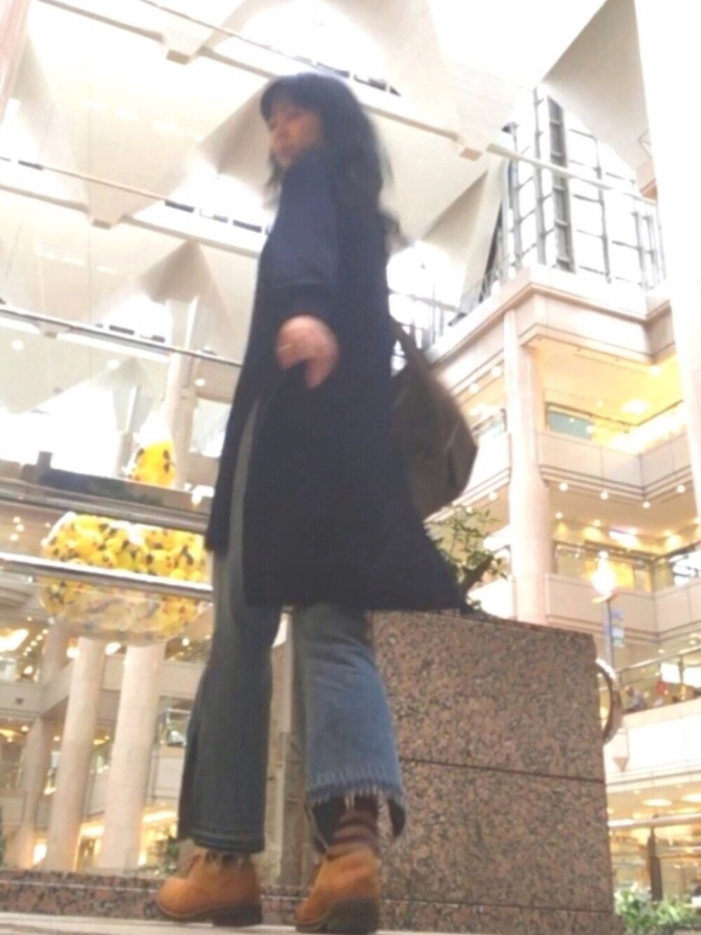 皆さん、いつもありがとうございます! GUのデニム、某ユーザさんが履いていたのを一目惚れ😍真似させてもらいました💕 横にスリット入っていて、動きやすくて形も好きです❤️ 上に着てるニットワンピもスリット入ってますね〜👀 ここはみなとみらいランドマークです✨ 歩くのが好きなので、ぷらぷらと買い物に行きました🚶 何故かこの近辺ではピカチュウ推しで、奥にもミッチリとピカチュウが入ったバルーンがあります✨ 勇気を出して、柱の影にiPhone置いて動画撮影したんですが、知らずにカメラの前横切る人がいたりして、ベストショットがこれでした😂