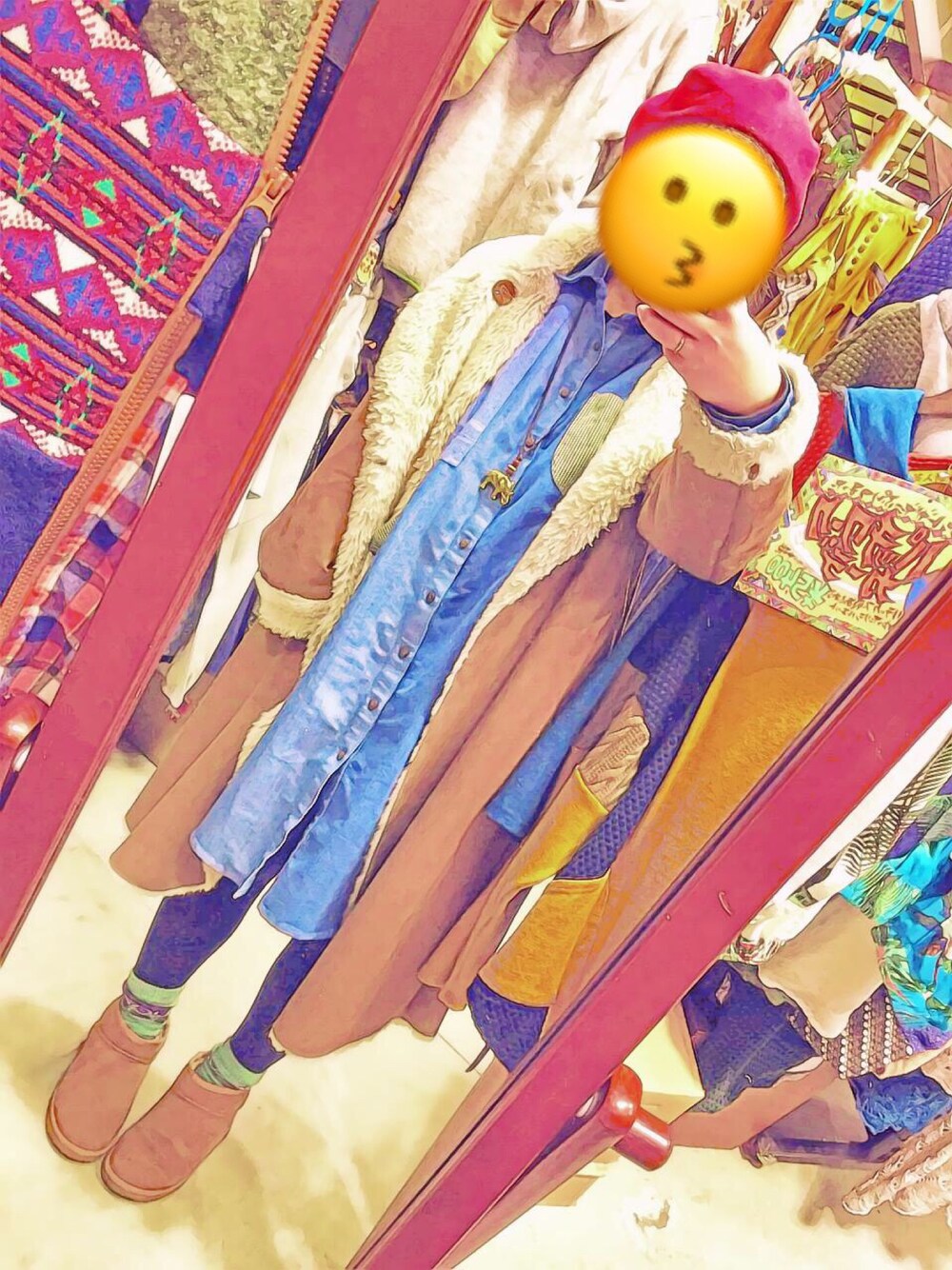 春コーデだけど ムートンコートで冬コーデに😭
