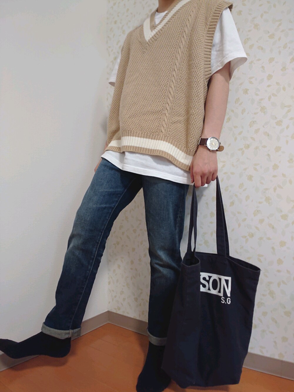 今回はニットベストを使ったプチプラコーデ! WEGOのニットベストは可愛くて安いのでとてもおすすめです! 白Tシャツとの相性もバツグン!