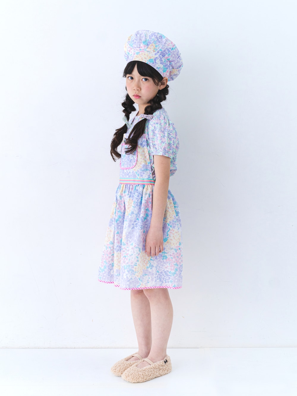 まるでワンピースのようなふんわりシルエットのキッズエプロン* おそろいのシェフ帽子とあわせれば、小さなコックさんスタイルに👩🍳 学校の授業やママのお手伝いに♩ エプロンは大人も使えるので、親子おそろいで身につけたらクッキングの時間がもっとたのしくなりそう❣️