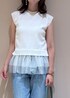 トレンドのチュールドッキングニットを使った大人キレイめカジュアルコーデ。 デニムを合わせてオフィスでも使えるコーデに。