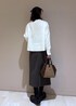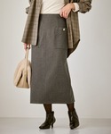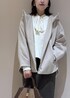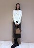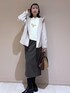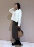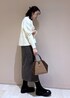 毎年人気のフーディーにニットを合わせたスカートコーデ。 敢えてアウターと同系色のニットを合わせるとより顔まわりが明るく見えます。 ニットの裾からチラッとブラウスをレイヤードをするのもおすすめです。 バッグは秋らしいバッグを。