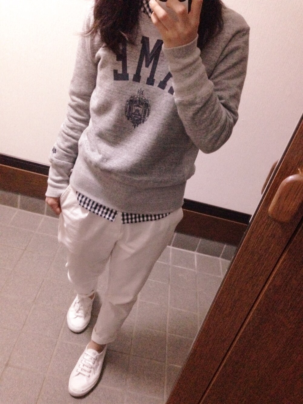 トップス:Americana シャツ:無印良品 パンツ:LEPSIM LOWRYS FARM シューズ:SUPERGA