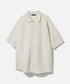 ⚪︎パールボタンニットシャツ 繊細な地柄とパールの艶めきが織りなす、クラス感漂うモダンポロシャツ。 DESIGN HAREらしいシャープな地柄編地をベースに、ミニマルな中にもエレガンスを宿した一着。 フロントには上品な光沢を放つパールボタンを贅沢に配し、スポーティーな印象のポロシャツをドレスライクで洗練された佇まいへと昇華させました。 特にブラウンは、絶妙にトーンの異なる2色の糸を用いた微配色で編み立てることで、単色にはない深みと奥行きのある表情を演出しています。 襟や袖口のリブ切替が全体を引き締め、一枚で着用してもインナーとしても、確かな存在感を放つデザインに仕上がりました。