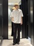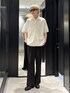 ⚪︎パールボタンニットシャツ 繊細な地柄とパールの艶めきが織りなす、クラス感漂うモダンポロシャツ。 DESIGN HAREらしいシャープな地柄編地をベースに、ミニマルな中にもエレガンスを宿した一着。 フロントには上品な光沢を放つパールボタンを贅沢に配し、スポーティーな印象のポロシャツをドレスライクで洗練された佇まいへと昇華させました。 特にブラウンは、絶妙にトーンの異なる2色の糸を用いた微配色で編み立てることで、単色にはない深みと奥行きのある表情を演出しています。 襟や袖口のリブ切替が全体を引き締め、一枚で着用してもインナーとしても、確かな存在感を放つデザインに仕上がりました。