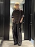 ⚪︎パールボタンニットシャツ 繊細な地柄とパールの艶めきが織りなす、クラス感漂うモダンポロシャツ。 DESIGN HAREらしいシャープな地柄編地をベースに、ミニマルな中にもエレガンスを宿した一着。 フロントには上品な光沢を放つパールボタンを贅沢に配し、スポーティーな印象のポロシャツをドレスライクで洗練された佇まいへと昇華させました。 特にブラウンは、絶妙にトーンの異なる2色の糸を用いた微配色で編み立てることで、単色にはない深みと奥行きのある表情を演出しています。 襟や袖口のリブ切替が全体を引き締め、一枚で着用してもインナーとしても、確かな存在感を放つデザインに仕上がりました。