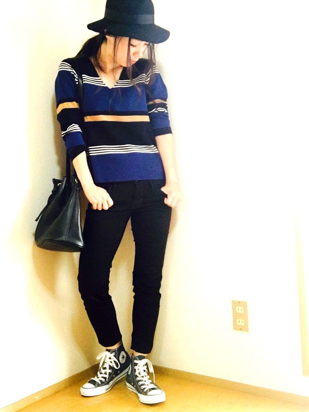 これさえあれば他のスニーカーいらないってくらい万能なコンバース! コーデ次第でドカジュアルにもラグジュアリーにも対応できるので、ワードローブには欠かせないです。 今回は秋を意識してブルー×ブラックで大人っぽく、ハイカットを目立たせたかったのでスキニーパンツでコーデしました。 少し足首を見せることで女性らしさがぐっとUPするかなと思います^_^