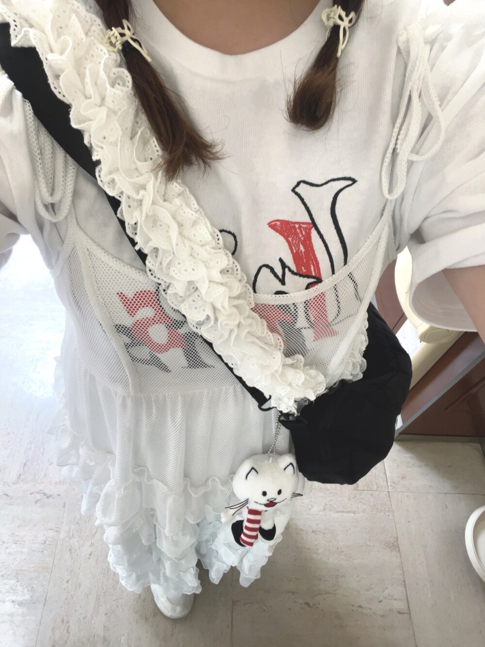 miのワンピース「メッシュフリルキャミワンピース」を使ったコーディネート