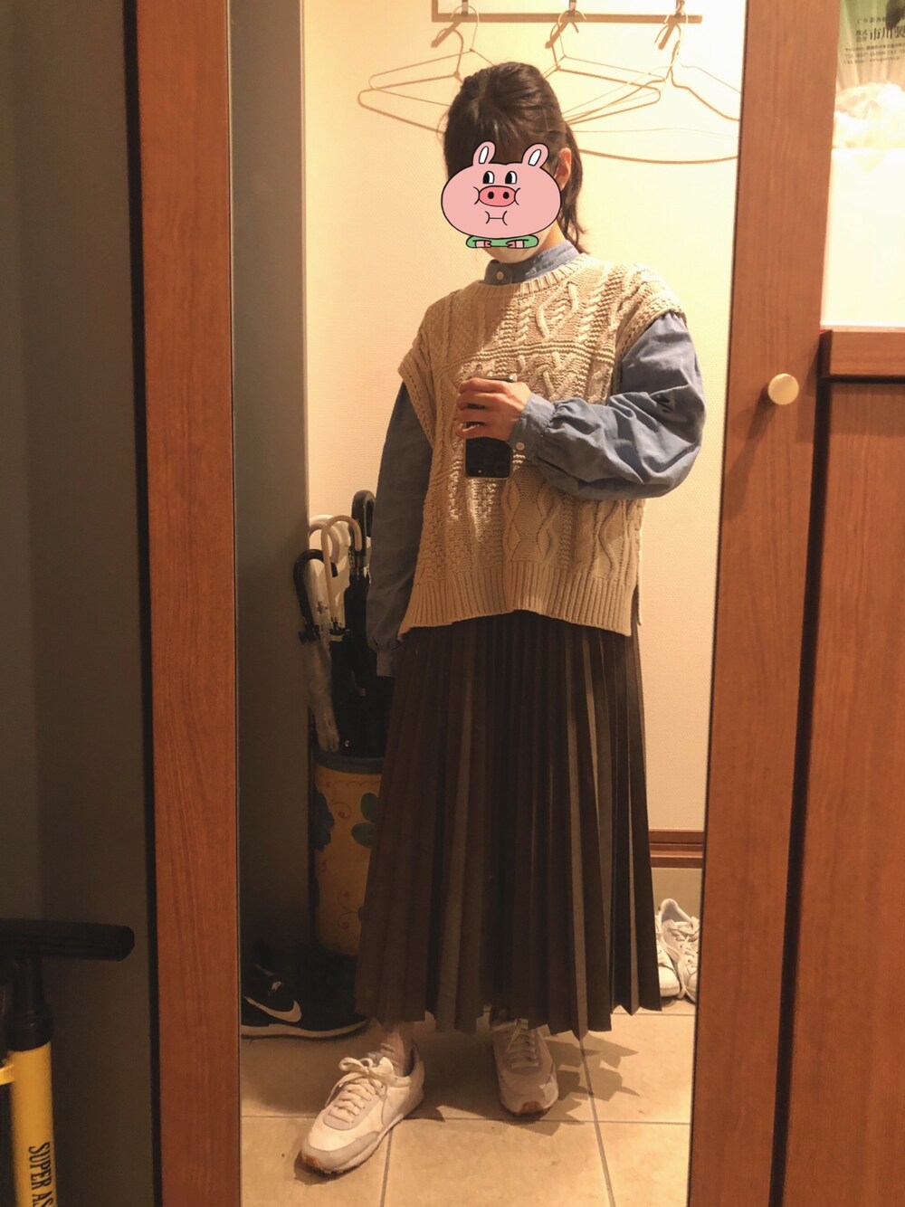 zuki のニット/セーター「パッチワークケーブルニットベスト」を使ったコーディネート