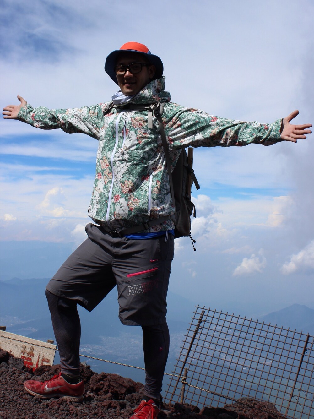 Hat: THE NORTH FACE×CHUMS Tops: Columbia Shorts: NIKE Tights: Marmot Shoes: NIKE ランニングシューズで 富士登山したら 後悔する。