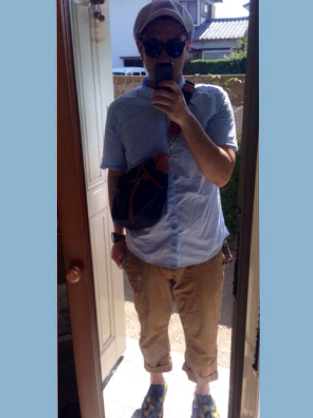 cap: no brand shirts: H&M pants: H&M shoes: GLOBAL WORK grass: coen bag: nano universe watch: NIXON 涼しい格好を心がけていても 暑いものは暑い。
