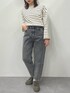 全身sailコーデ✌️ このデニムパンツがジャストすぎて感動しております。ゆったり履きたいのにサイズが合わないこと多いけど、小柄さん設計だからゆったりなのにぴったり履けます!!✨ あとはこの流行りのワッシャー加工がそこまで重く見えることなく、季節が限られる心配もなさそう◎