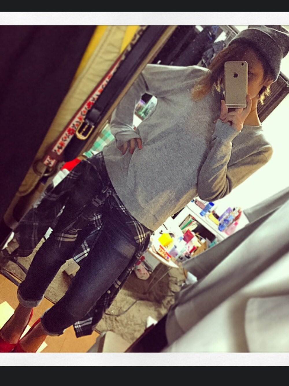 トップス変えただけかーーい。w しかし自分の中でグレーブーム。 カジュアルですが、パンプスにすれば🙆かな? ペアルックもできそう、が、しかし。ww