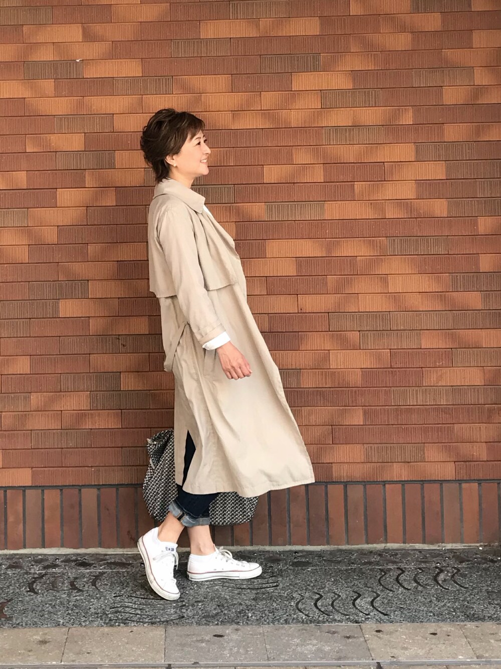 大人のシンプルなカジュアルスタイル トロンとしたコートを デニムとコンバースに合わせた シンプルな組み合わせ 🎶