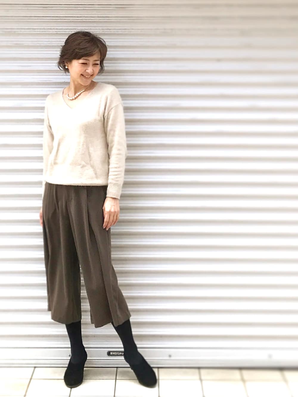 大人カジュアルコーディネート ふわふわセーター&ガウチョパンツ ガウチョパンツstyleはきれい目カジュアル やわらかな雰囲気を出したかったので トップスはアンゴラ素材のふわふわのセーターをセレクト カラーのバランスも統一感のあるブラウン