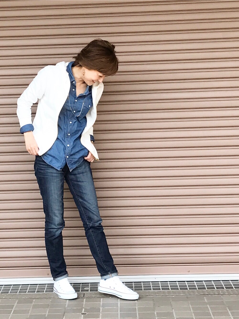 大人カジュアルコーディネート 春ファッション ちょこっとご近所のインナーstyle も アウターを まとって外出STYLE