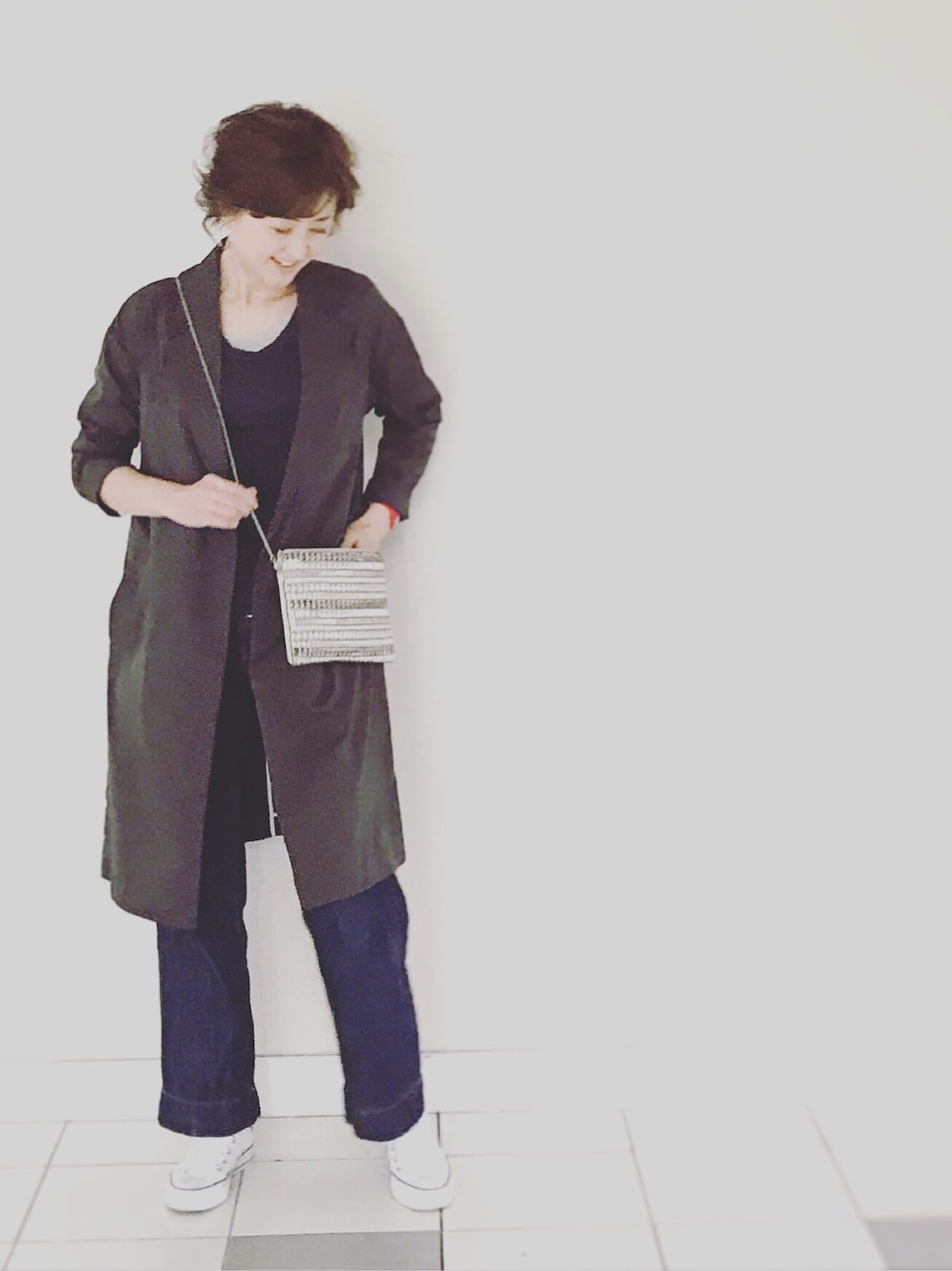 大人カジュアルstyle グレーコーディネート 秋春兼用チェスターコート ▪︎ ▪︎ ▪︎ マニッュなとstyleを カジュアル女っぽい雰囲気にしました。