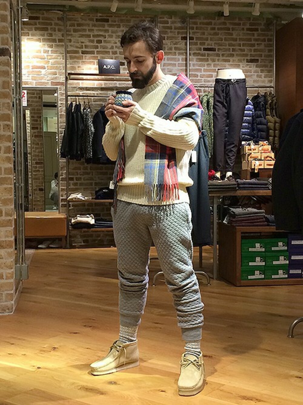 寒さが深まるシーズンもオシャレ心は忘れたくない。。。 「冬の朝」をイメージしたあったかリラックススタイル。 今シーズンマストなワイドリブのニットはその風合いでウォーム感をプラス。 キルトのイージーパンツは着心地を大切にしながらも、コーディネートしやすい細身のシルエットに仕上がっています。 ナチュラルカラーでまとめた中にもアーバンテイストをエッセンスとして盛り込みました。