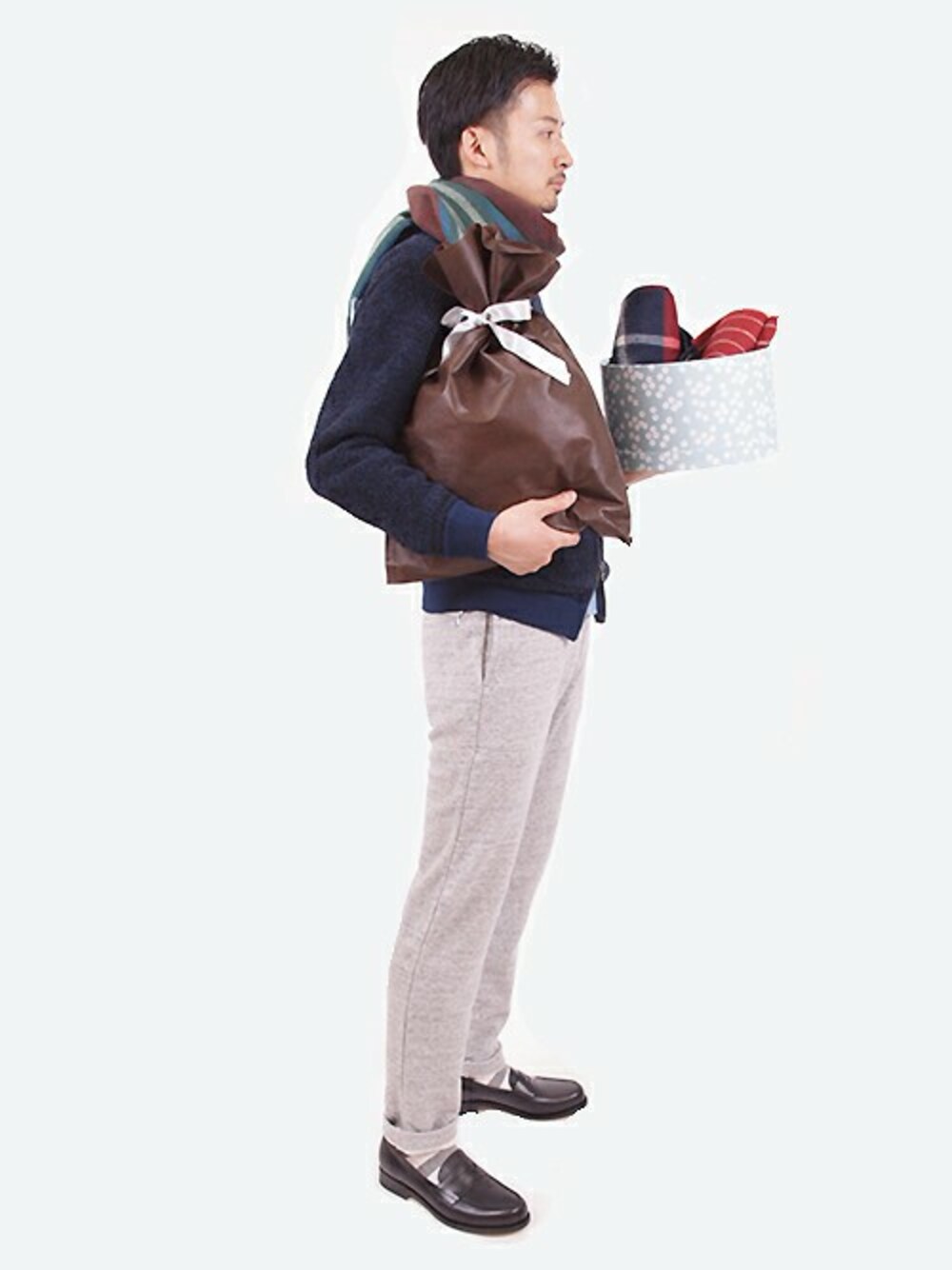 プレゼントを抱えて待ち合わせ。。。そんなシーンをイメージした週末スタイル。 スウェットアイテムでリラックス感を出しつつ、こだわりのサイジングや足元のローファーでラフ過ぎないスタイルをご提案。 小物次第で様々なアレンジが出来るのもベーシックな組み合わせの魅力のひとつです。