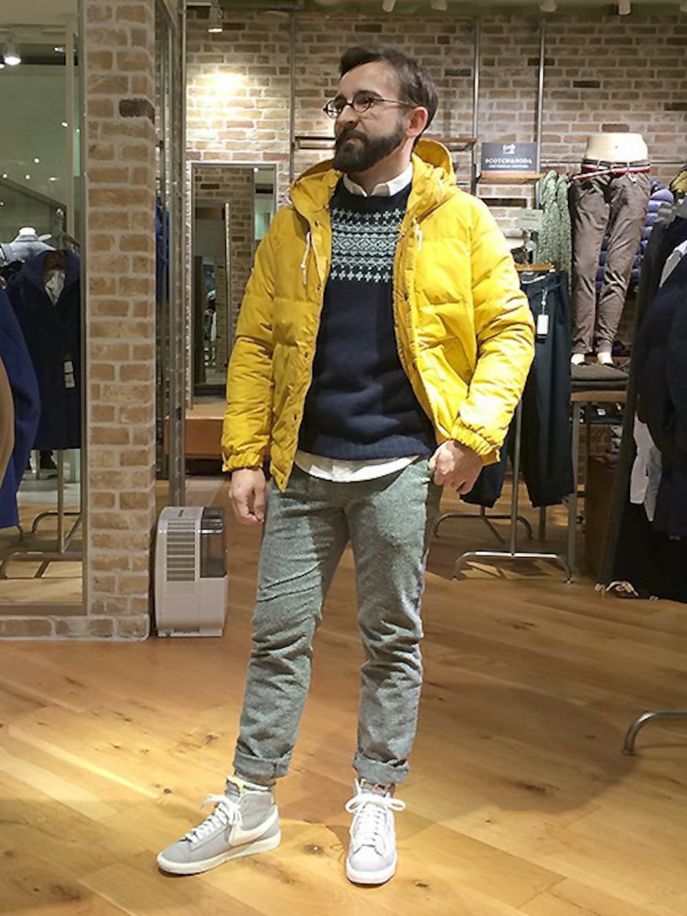 寒さが深まるこの時期にマストなアイテムと言えばノルディック柄のニット。 一枚でシーズンムードを盛り上げつつ、どんなアイテムとも好相性です。 存在感たっぷりのニットに負けないイエローのアウターは中綿に軽量且つ保温性の高い化繊中綿のハイテクインサレーション とDiAPLEX typeCを表地に使用。レトロ顔のダウンにモダンなディテールと機能性を持たせています。 クリスマスのお出かけにもオススメのスタイルです。
