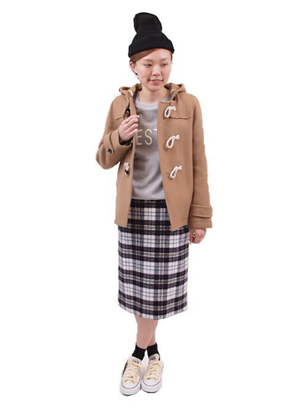 ダッフルにスウェット、コンバースのスニーカーというスクールテイスト満載なアイテムに 膝下丈スカートで今年らしさをさりげなくプラス。 ショート丈のダッフルはマルチにコーデが可能な着丈に加え、1頭の羊から1回しか取れない非常に貴重で高級な原料である ジーロン ラムズ ウールを使用したこだわりの一枚。 あたたかさとしなやかさ、また体になじむ着心地で長く使って頂けるデザインになっています。