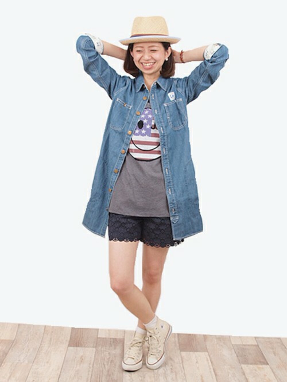こなれ感がかわいいLeeのデニムワンピースは、裏地がFREDY & GLOSTER別注の大人気アイテム! ワンピースとしてだけではなく、この時期は前を開けてカバーオールの様にアウターとして着るのも おすすめ。 ポップなプリントをチラ見せさせれば、より軽い印象になります。