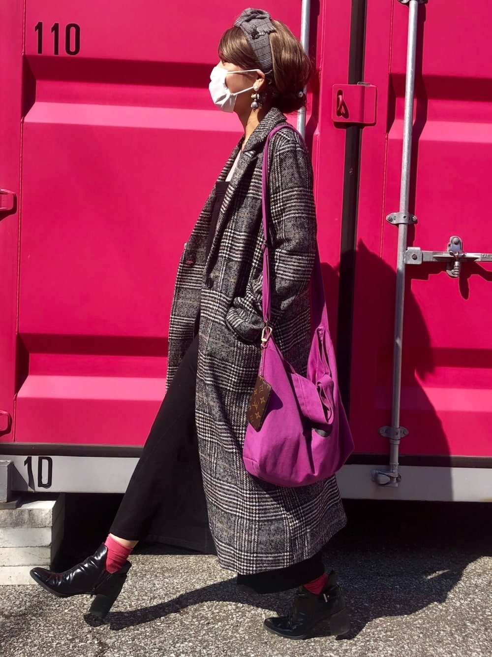 そろそろ冬も終わりだから、チェックを満喫♡ 春服とちょっとずつ入れ替えしなきゃコーデ すっかりマスクがコーデの必需品化してます😷