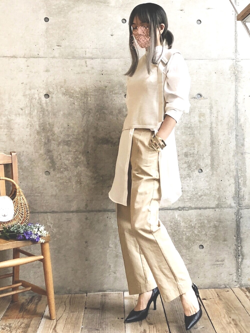 ベージュのニュアンスまとめがすーき。 このパンツめっちゃ脚綺麗に見えますよよよよ たまにはパンツコーデ引き締まっていーな 🥰