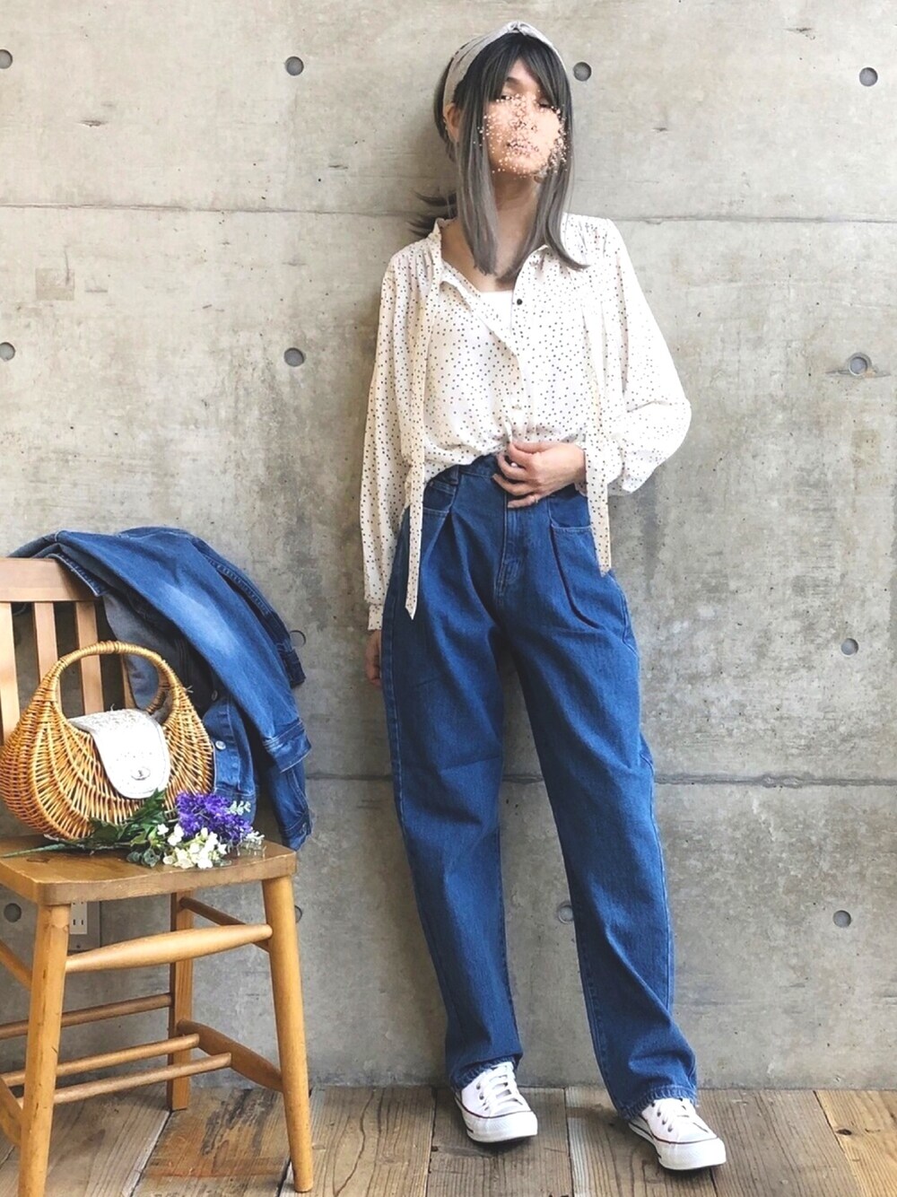 ten⭐︎ichiko のデニムパンツ「デニムセミワイドパンツ」を使ったコーディネート