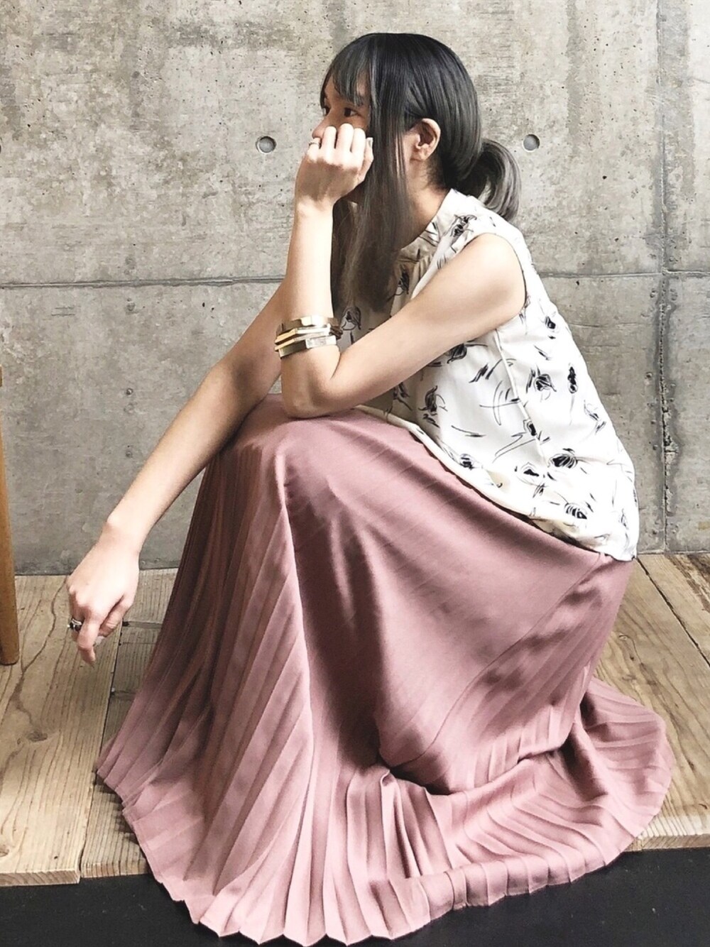 ten⭐︎ichiko のスカート「アコーディオンプリーツスカート」を使ったコーディネート