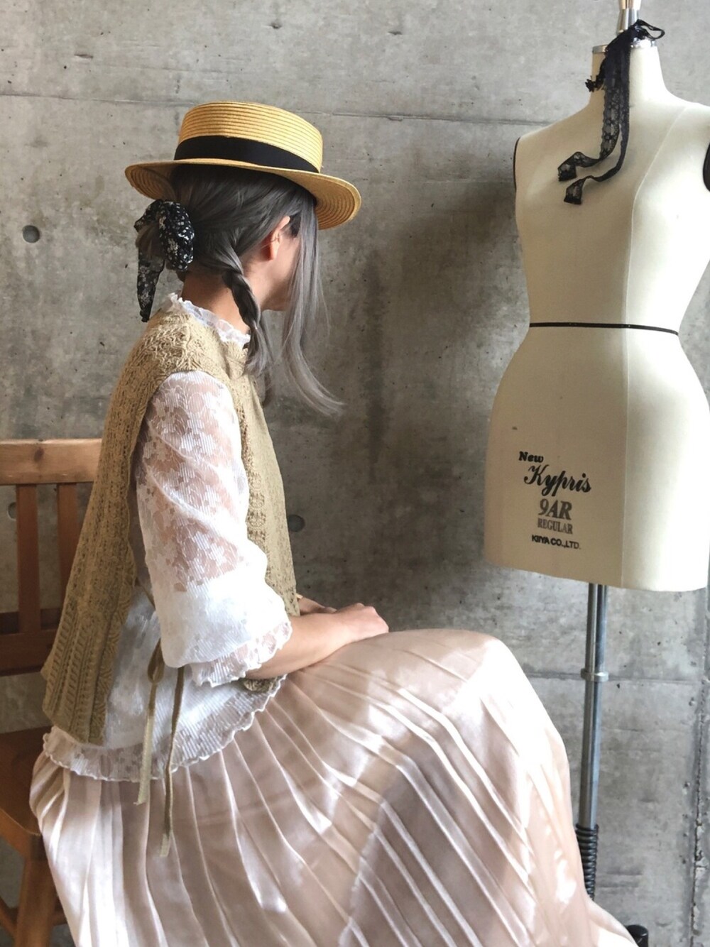 おばあちゃんが編んでくれたみたいなホッコリかわいいクロシェベスト♡ そのままでもナチュラルかわいいのに、シアーシャイニーなアイテム合わせたらめたんこ可愛かった♡ これ着てネモフィラ見に行きたかったーよーー😭 でもどのアイテムも着回しするから、まぁいっか!!🥰