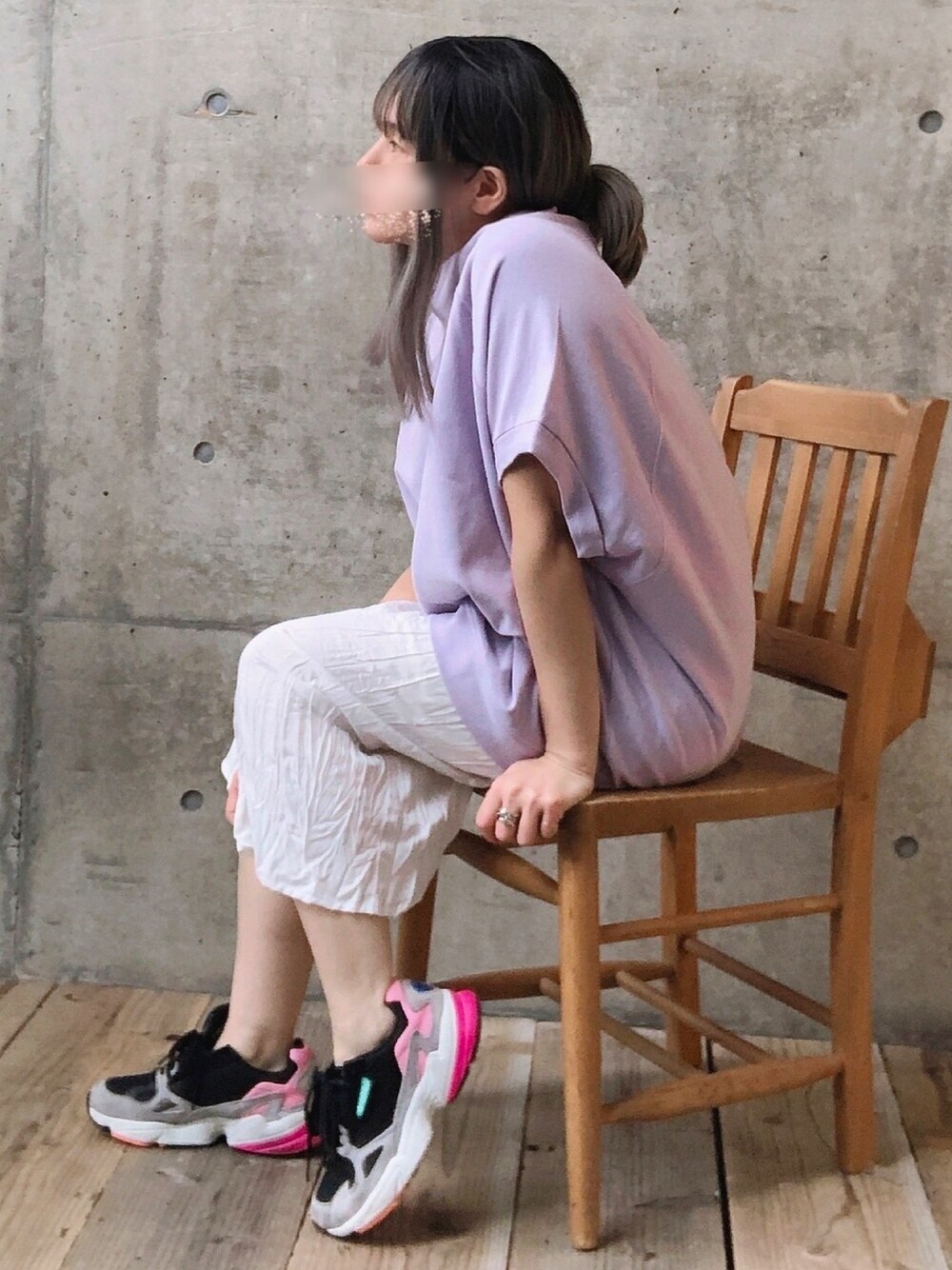 足元は派手にしちゃいがちな人です。 派手派手デザインをサラッと取り入れられるようになって大人を実感♡ 下品にならないって、大事! ドルマントップス、着心地良くて在宅勤務に役立ってます🎶