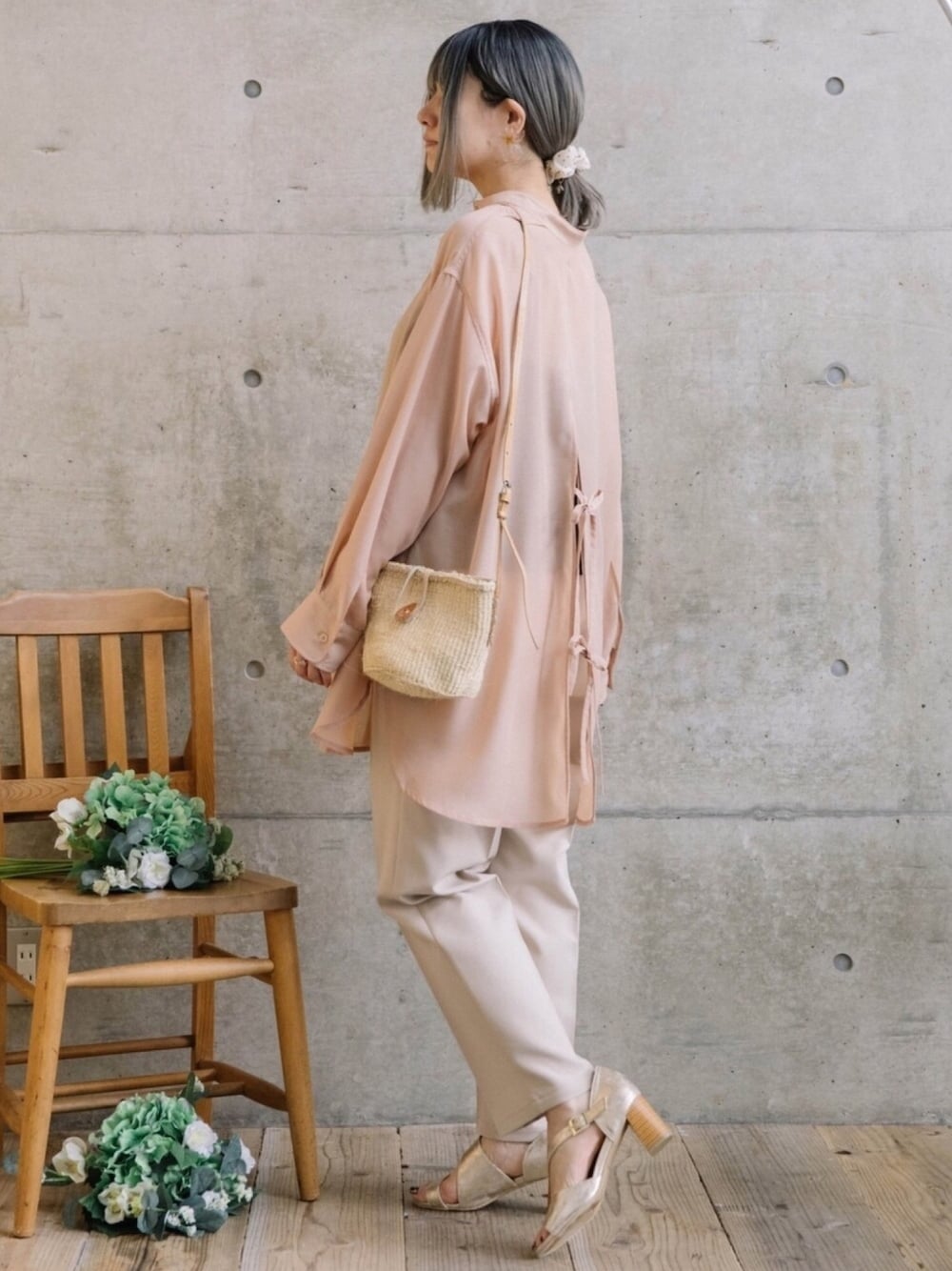 肌寒い梅雨時はシアーシャツがお役立ち♡ ちょっとバックシャンなデザインだと、涼しげで見た目にもお役立ちなのですっ!!