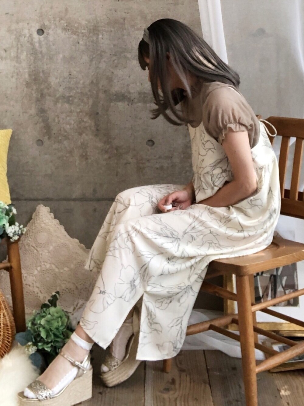 キャミワンピースが真夏は涼しくて最高に好きなんだけど、紐で丈感調節出来るとか私至上ベストなキャミワンピ見つけちゃいました♡ 線画タッチのボタニカルも今年っぽくてかーわいい! 1枚で水着の上に着ても良さげ。 色々着回しできそうなおススメです!