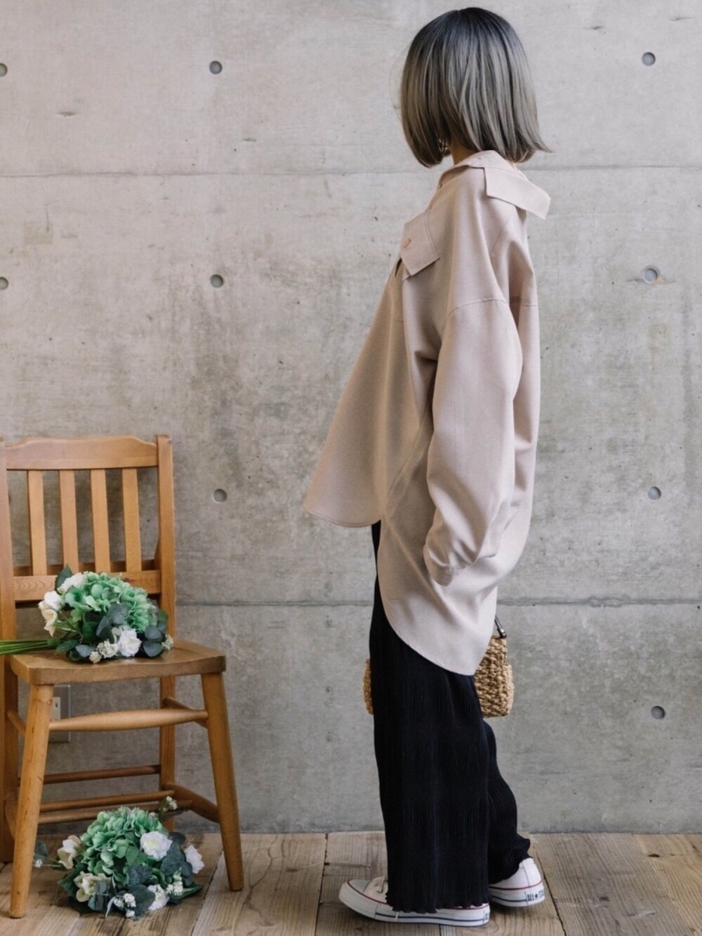 ルーズなシルエットきゃわ! ちょっと肌寒い日には羽織にもなるビッグシルエットワークシャツ、しっかり肉感が使いやすーい🥰🎶 (彼氏に借りたみたいな妄想がはかどります🤫