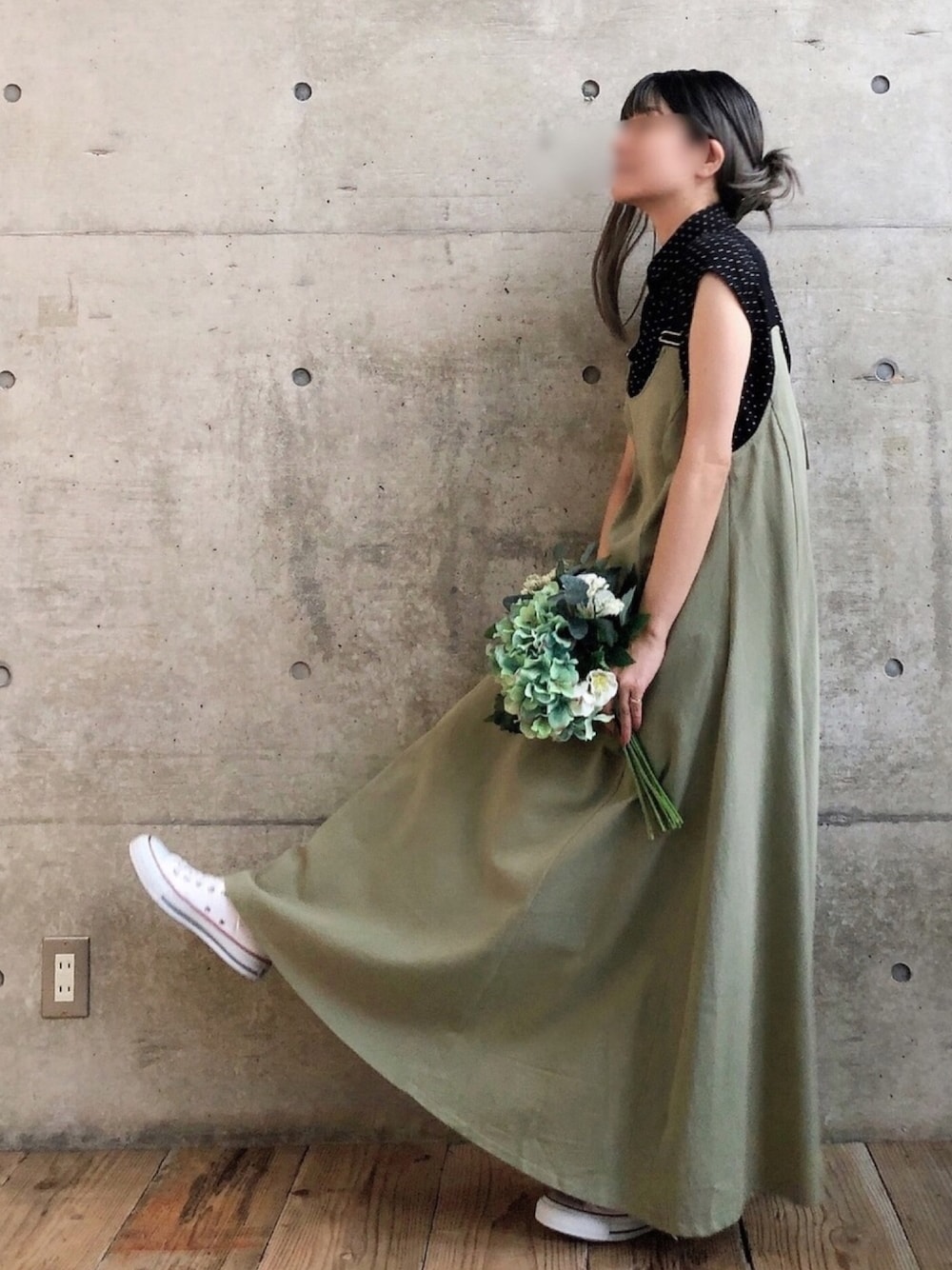 ten⭐︎ichiko のジャンパースカート「Aラインワークジャンパースカート」を使ったコーディネート