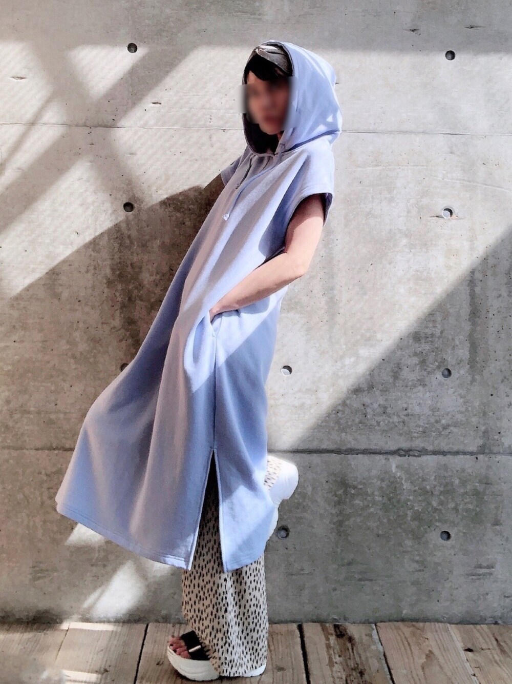 ten⭐︎ichiko のワンピース「ノースリーブビッグパーカーワンピース」を使ったコーディネート