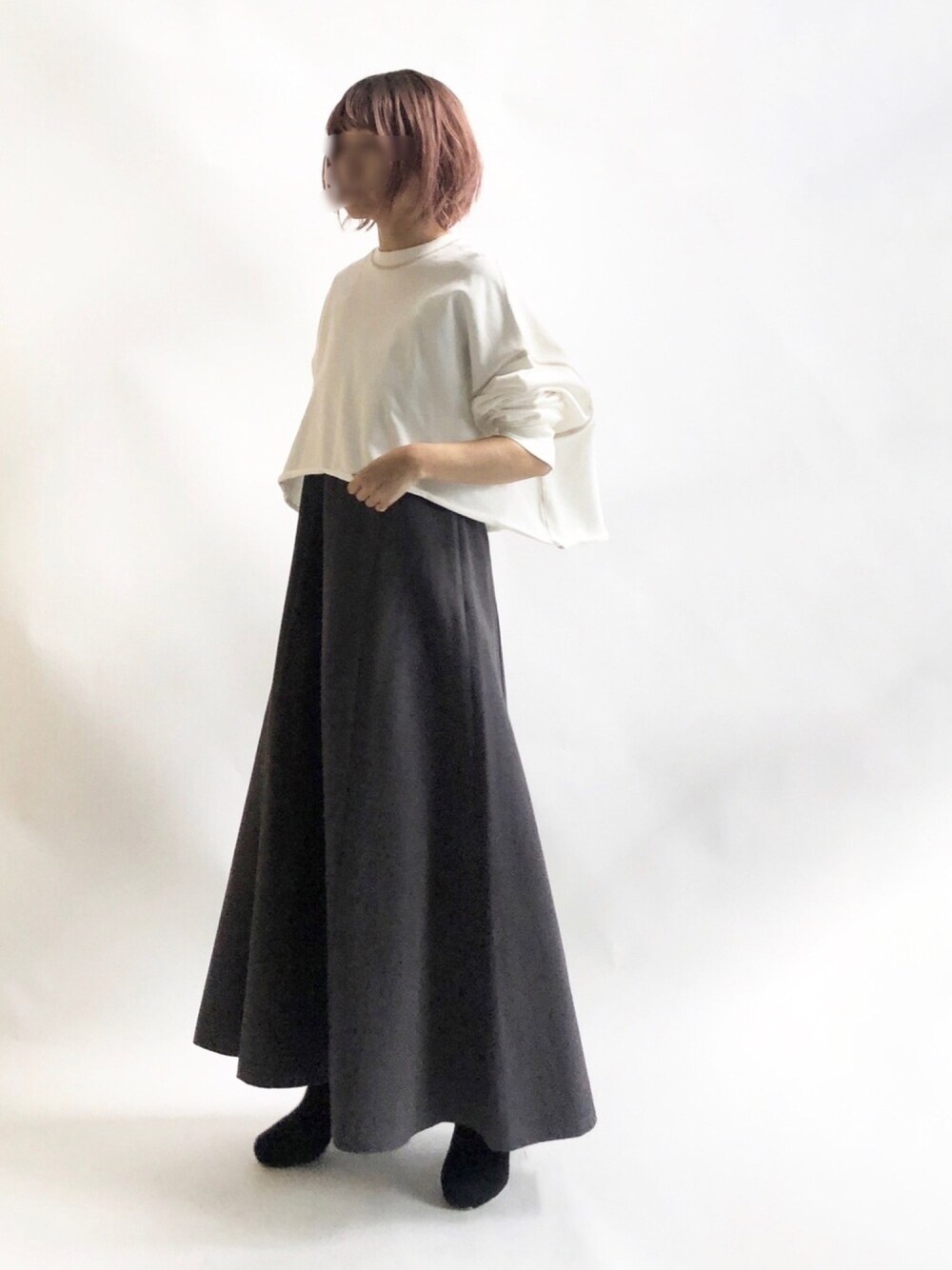 形がハイパー可愛いドルマンスウェット! Aラインのワンピースに合わせたらなんか新鮮なシルエットになったよ♫ 秋は可愛いなぁ♡