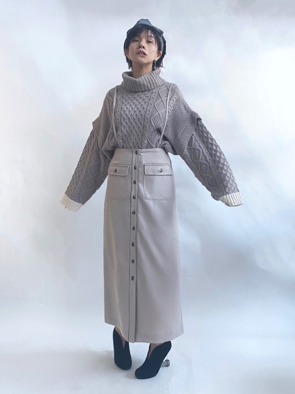 ten⭐︎ichiko のニット/セーター「配色オフタートルニット」を使ったコーディネート