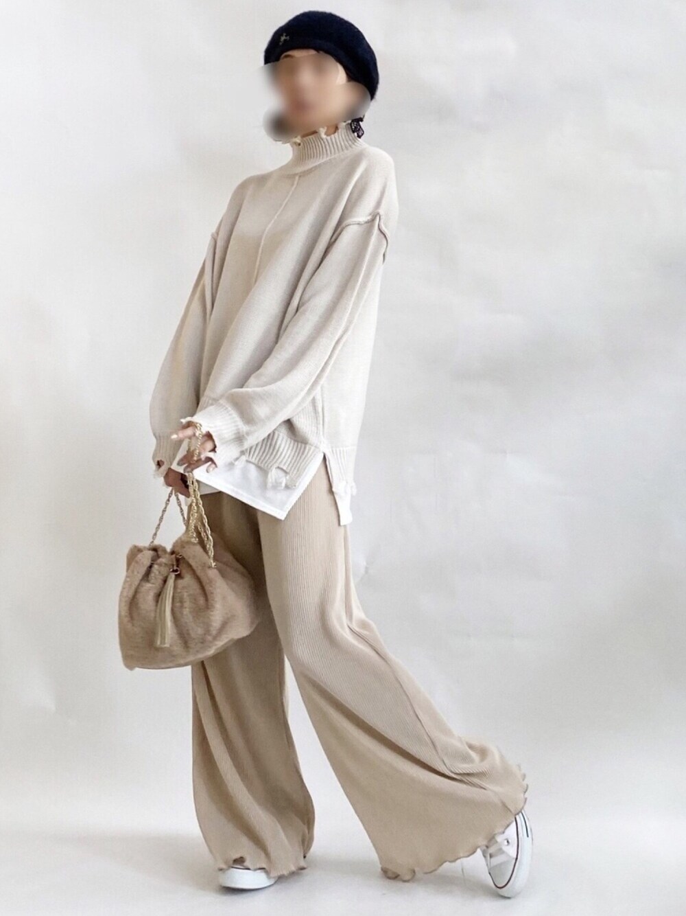 ダメージニットも、白系をセレクトすれば綺麗め! 大人が着るとかわいいミルクティーなワントーンコーデおすすめです♡