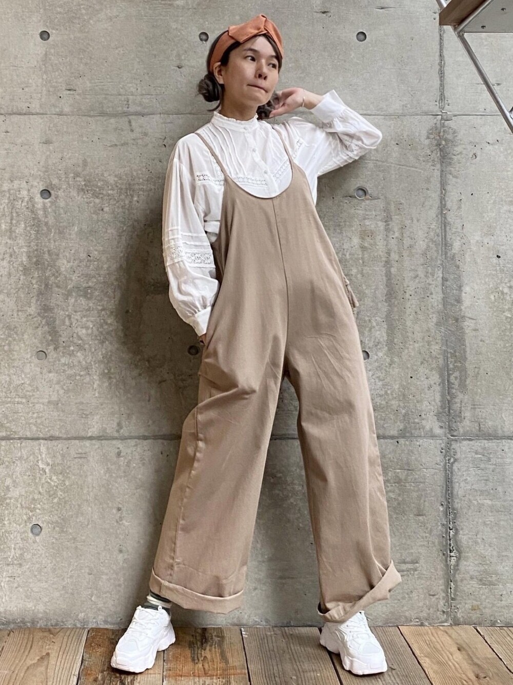 お休みの日は楽ちんがいーよね 後ろフリルのサロペットは体型カバーしてくれちゃう出来るこちゃん♫
