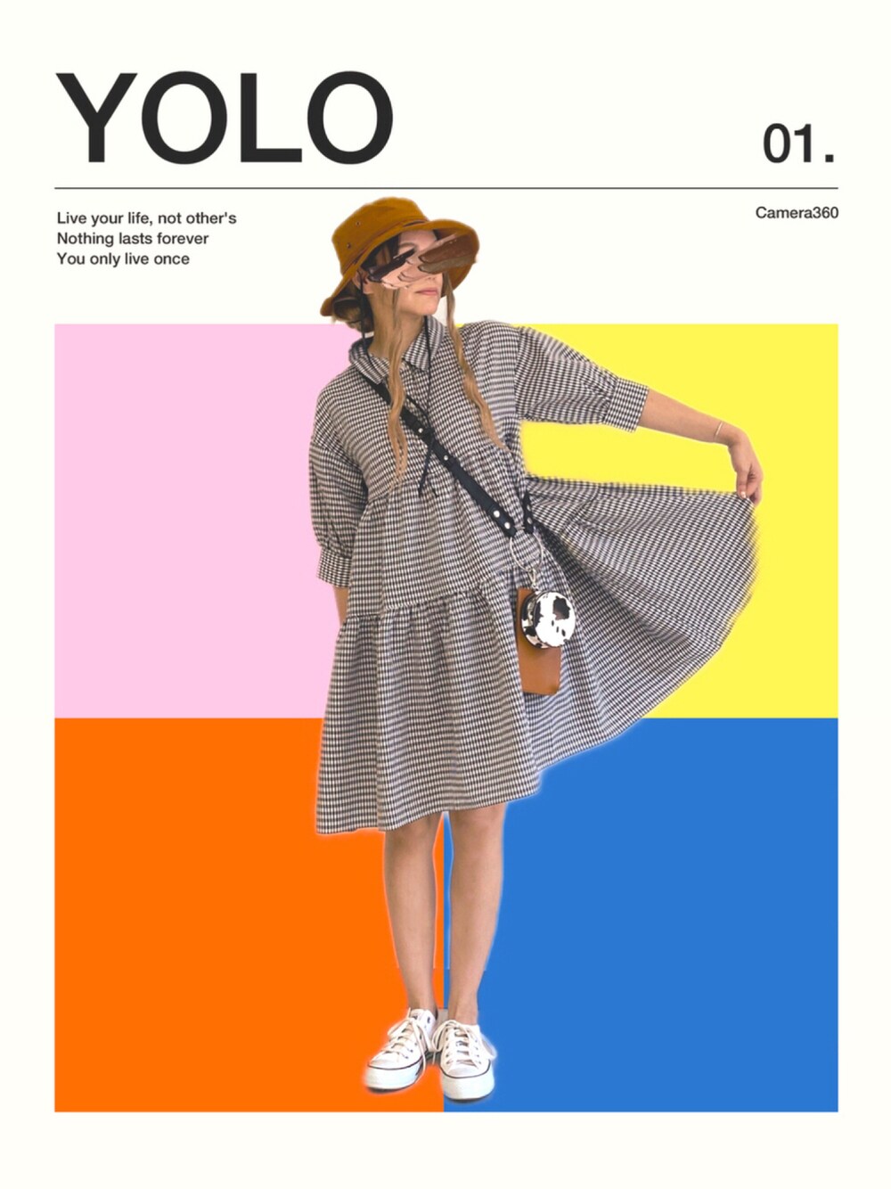 わたしにはちょいと可愛すぎるギンガムチェックのティアードワンピ。 ハットとスニーカーと、リングバッグでアクティブに♡ フェスとか行きたいコーデになりましたっ (行けないけど