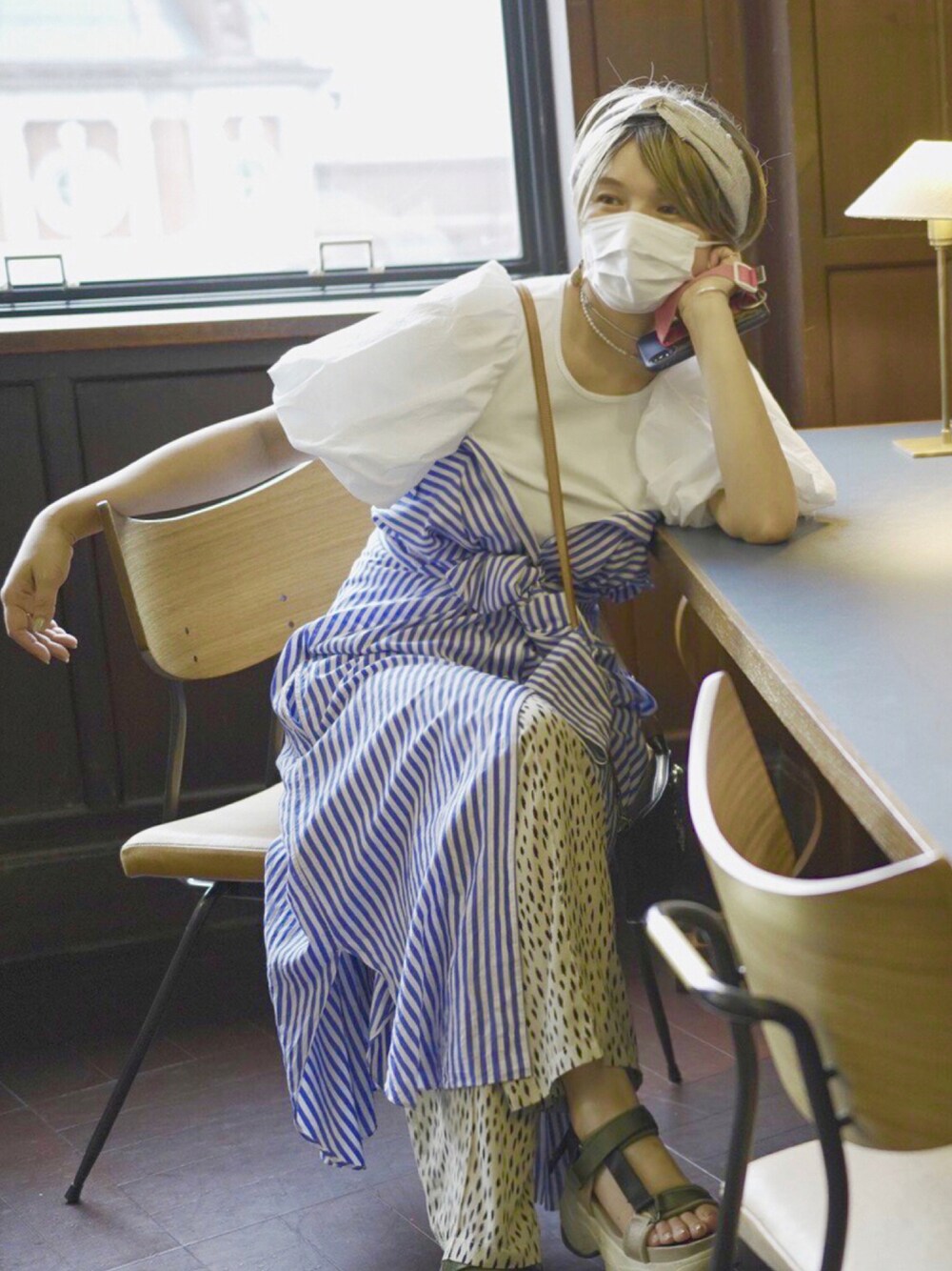 お気に入りシャツワンピをビスチェにアレンジ ストライプかわいーの。