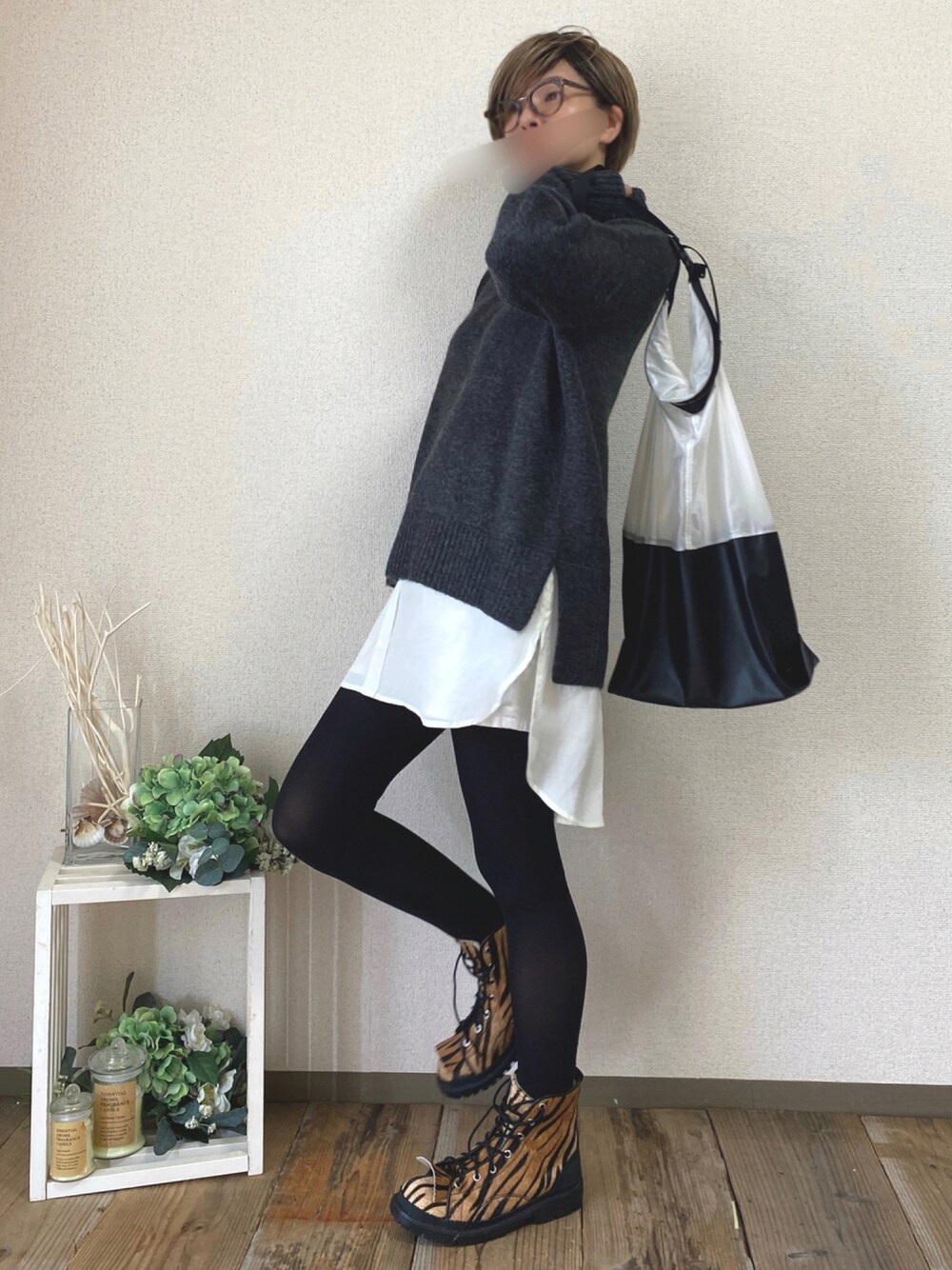 服とバッグの正反対さ。 モノトーンにアニマル差し色すっき!