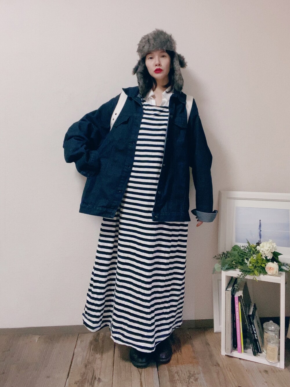 ブカブカデニムジャケット きゃわ! (最近重たすぎて面倒臭くてwearサボりがち フライトキャップ被りすぎ問題勃発中♡