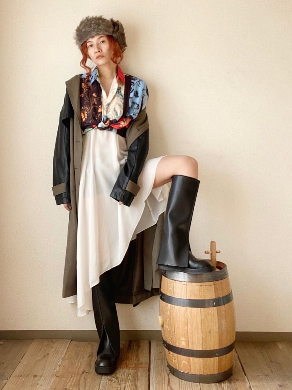 ten⭐︎ichiko のキャップ「フェイクファー ナイロン ファーハット / フライトキャップ / パイロット」を使ったコーディネート
