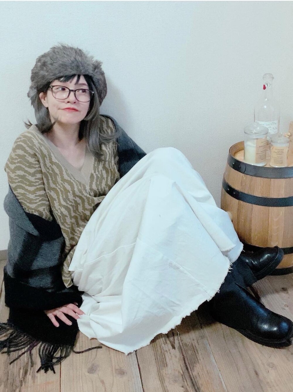 ten⭐︎ichiko のキャップ「フェイクファー ナイロン ファーハット / フライトキャップ / パイロット」を使ったコーディネート